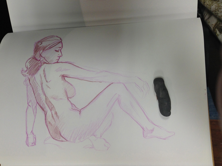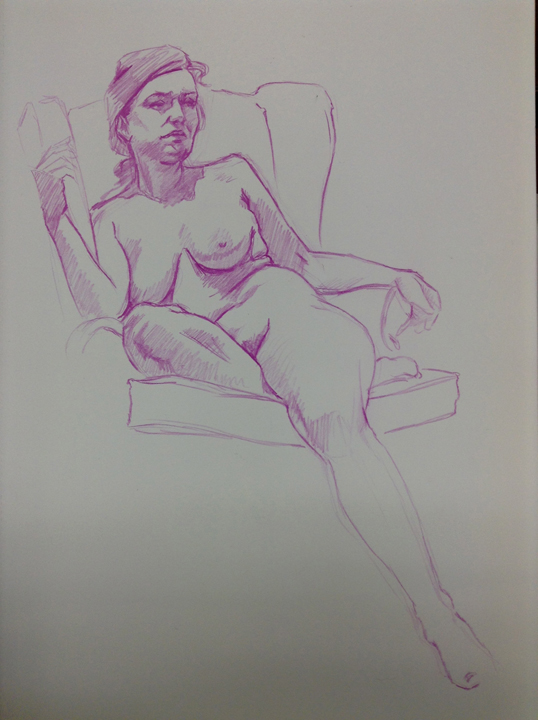 Still messing around with different media. I have the hardest time with charcoal (although Steve makes it looks so easy). So last night I just used flex pens and colored pencils. (When feeling simple, use simple tools.)