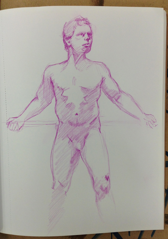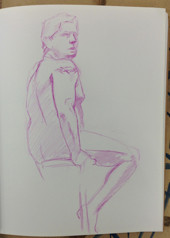 Just like all of the others. Only yesterday I only brought a little sketch pad with me so all of these drawings are smaller than I normally work. Also for some reason I was clinging tightly to my purple colored pencil and never switched to anything else.