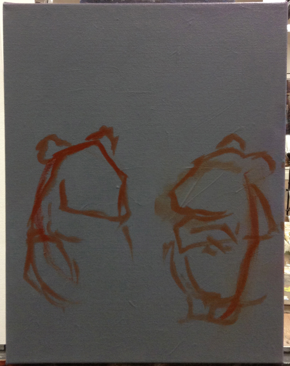 I’m not sure what was on this canvas originally – it’s one of the ones that I spraypainted to start over with. Hopefully this one goes better than whatever was there to begin with.
