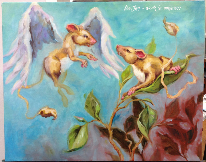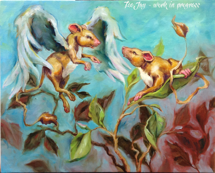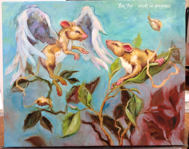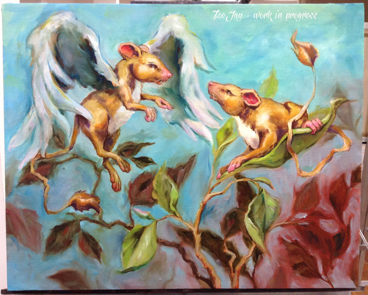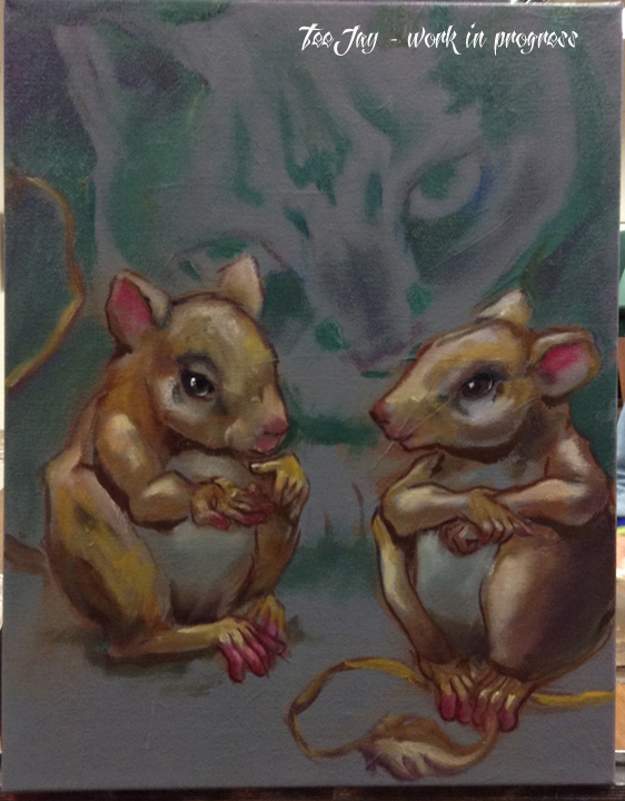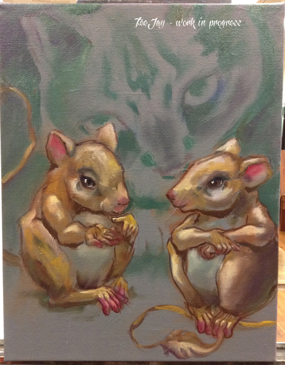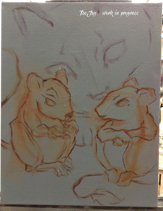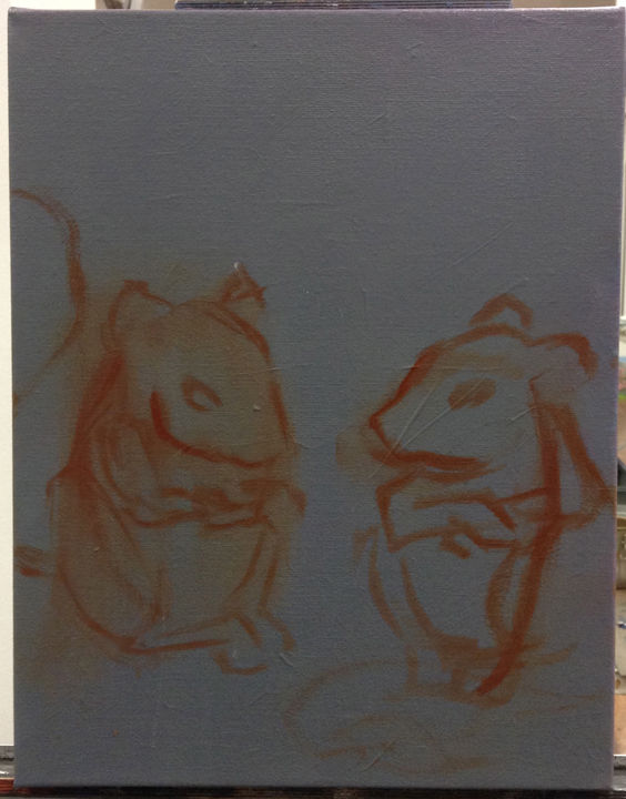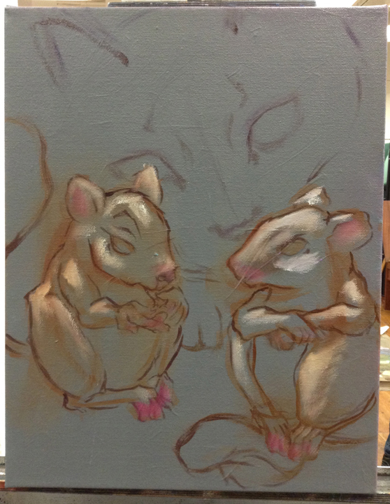 Continued to work on the rodent painting. Happier now, but I think this one needs at least one more session.