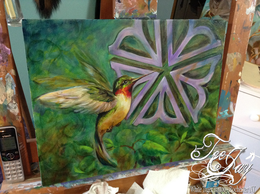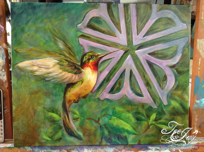 This on had been floating around in the examination phase. I decided the only thing that really bothered me enough to change was the back wing which I glazed over and dropped back further. That’s all she wrote for this one. It will get taken in at the same time as the Rochester Flower to get scanned also.