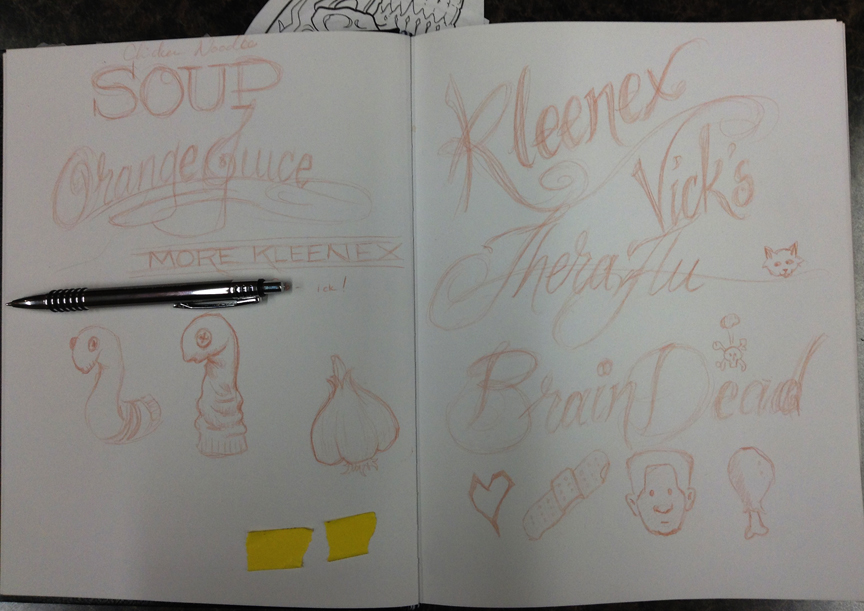 Facebook saved me from losing my mind while I was so incapacitated that I could even draw. When I started to feel a bit better I had gotten my sketch pad out and just stared at it for the better part of a day. I couldn’t even make stuff at that point. What happened next was some free form doodling.