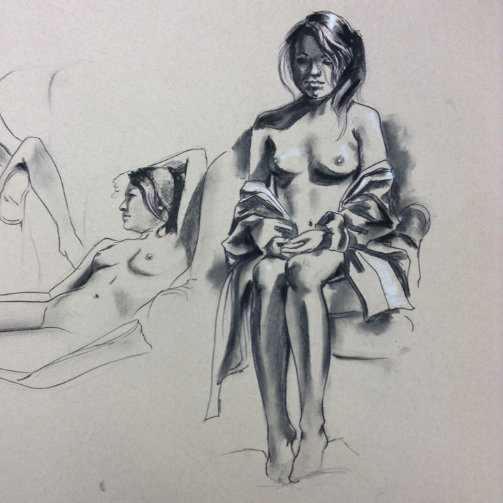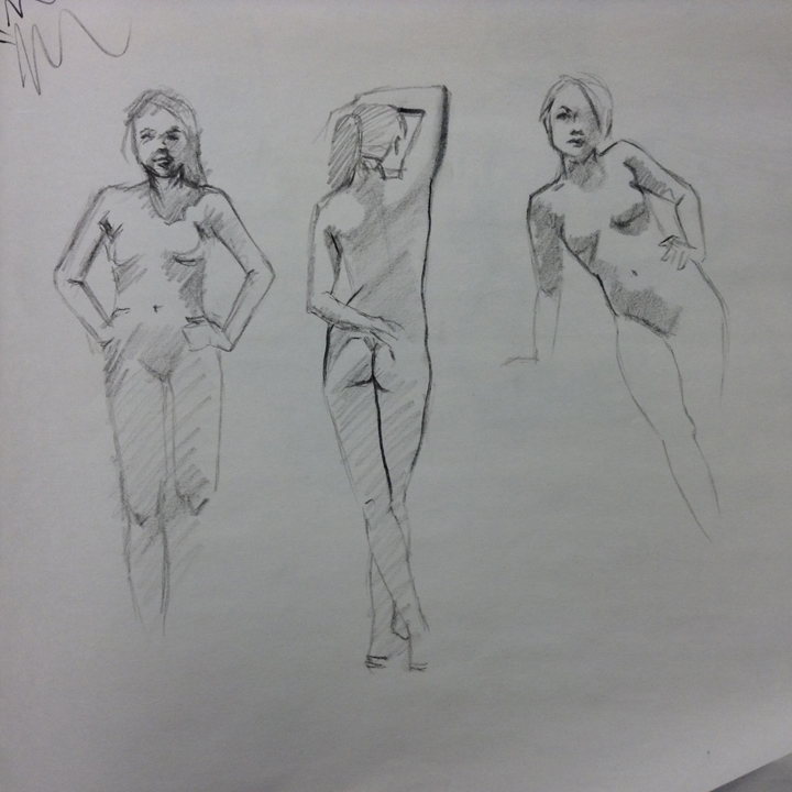 Monday was figure drawing and I was able to go this week. We had a great model. The last time she came in while I was there Steve had set up weird underlighting – which was great study and practice – but not very flattering to the model. This time I was sad I didn’t have more time. I would have loved to have worked longer with couple of these poses.