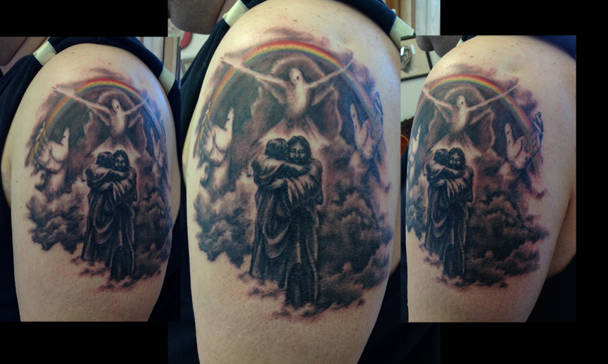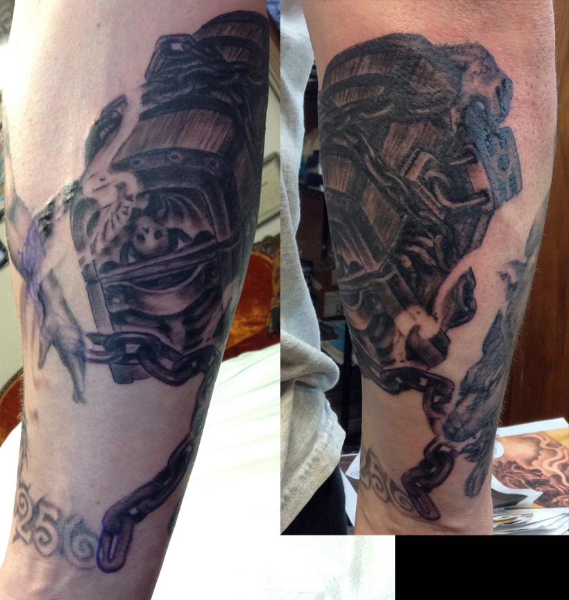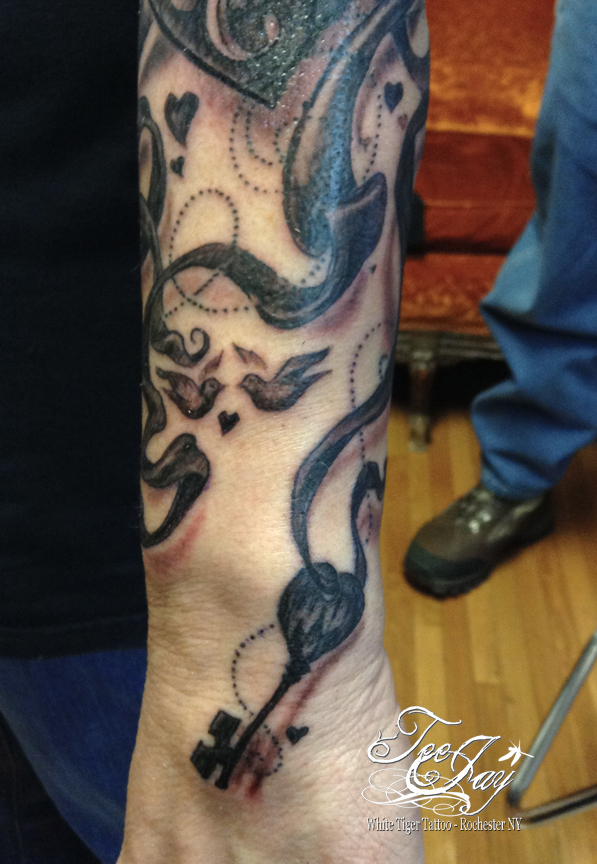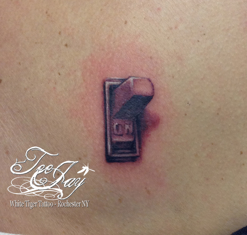 Tags: 3d lightswitch tattoo, dandelion tattoo, demon in a box, feminine tattoo, heart and key tattoo, Jesus tattoo