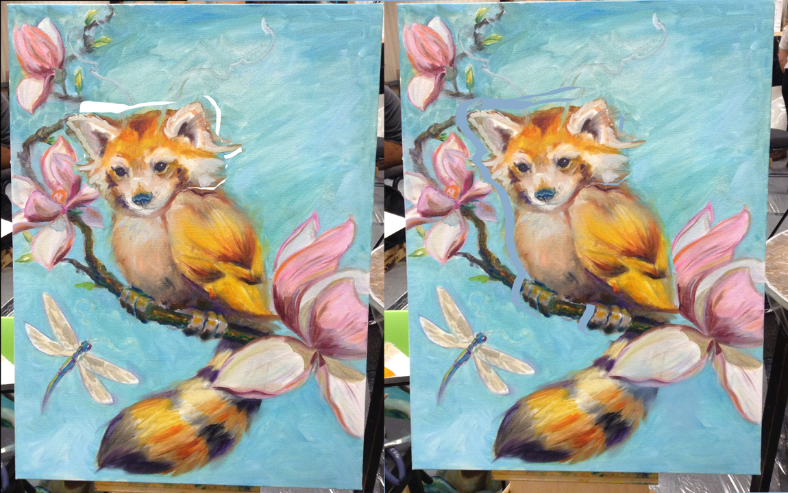 Instead I started out Sunday by wiping a good chunk of what I had done on Saturday off of the canvas.