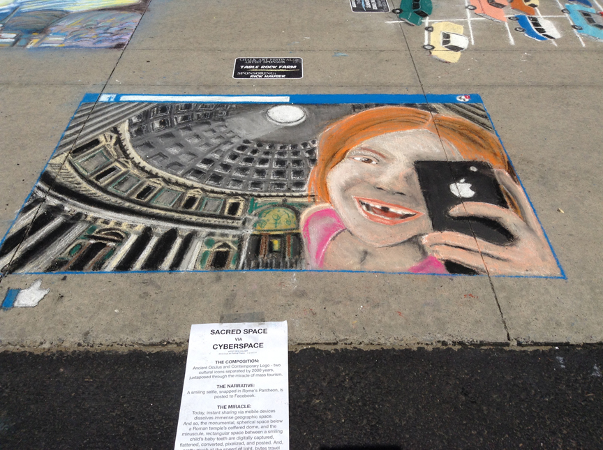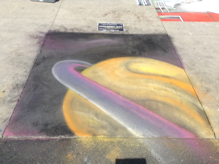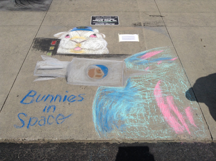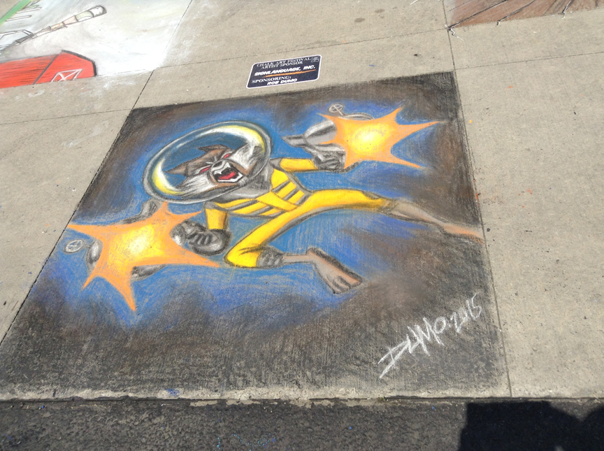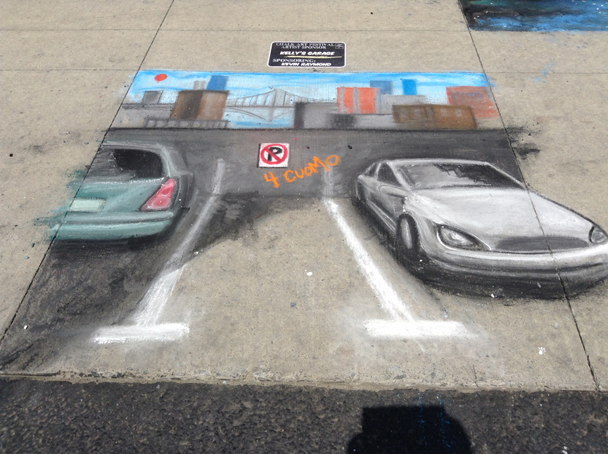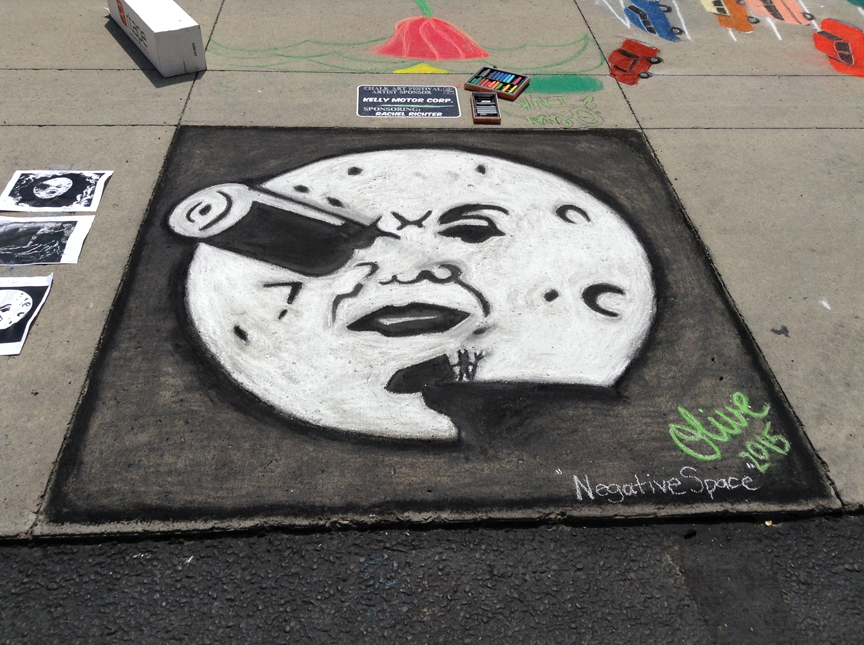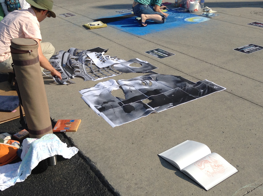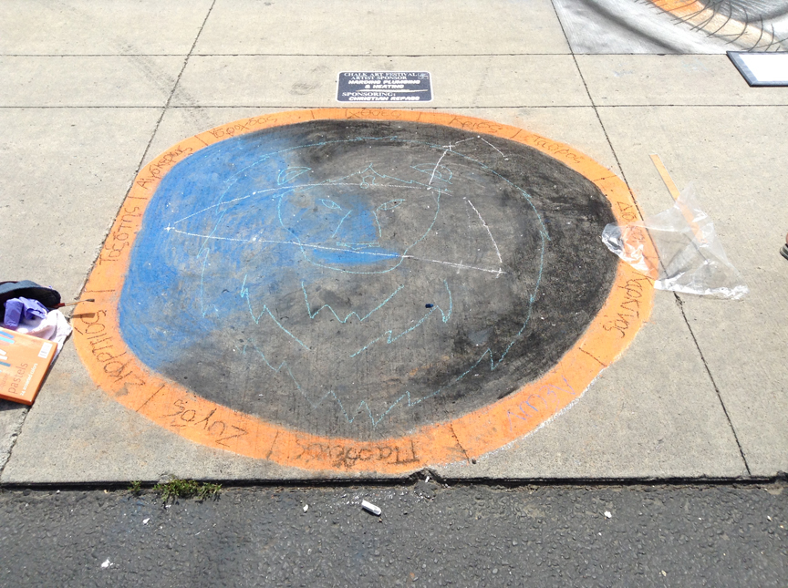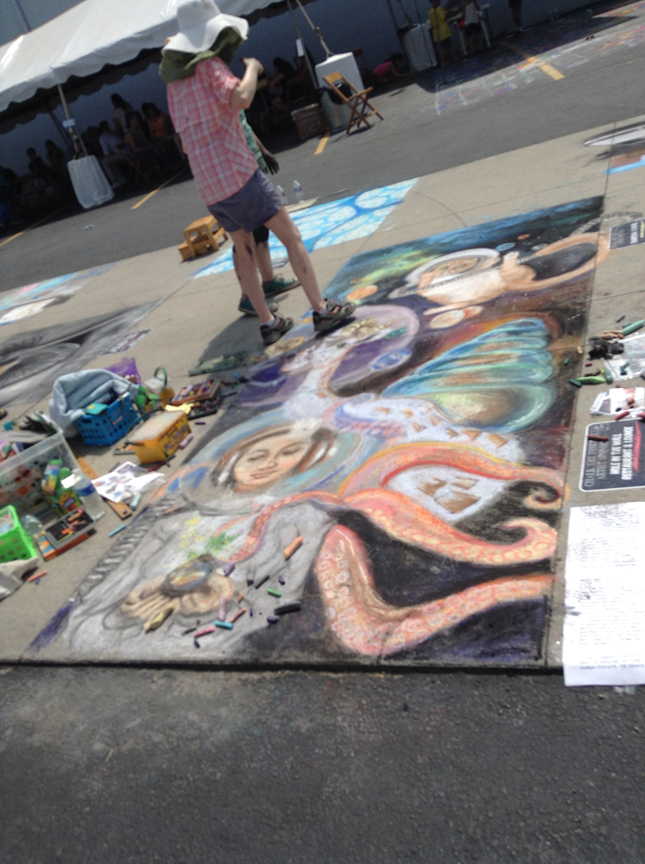 I looked around and the other chalkers were using chalk lines and grids and the guy next to me had brought a giant stencil with him. I started to panic and think that I had really gotten in over my head.