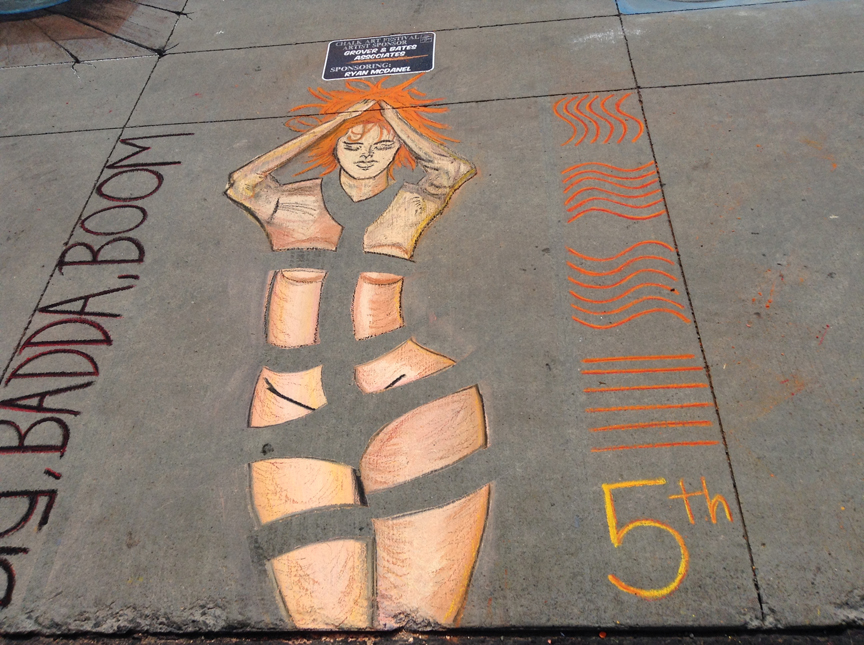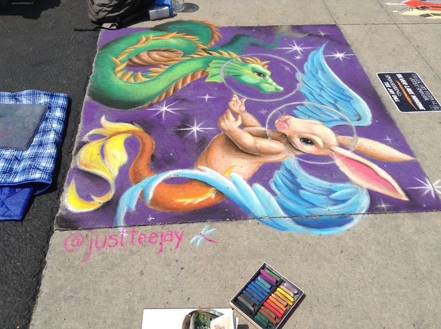 Then I heard Paul in my head making fun of me. This is chalk. This will wash off. I tattoo people for a living. They aren’t going to yell at me if my chalk drawing isn’t perfect. This is supposed to be fun. Lighten up TeeJay!