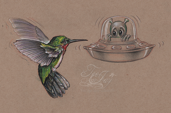 Day 10 – Alien. I hadn’t really thought too much of it before, but those hummingbird feeders really do look like little red UFOs. Made me think about the scene in HitchHiker’s Guide to the Galaxy where an entire attack force is eaten by a dog. Aliens might not be big and scary. They might be little and scared.