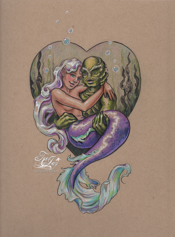 Day 19 – Creature from the Black Lagoon. I have to admit that I have never seen this movie. I’ve seen the images and the posters and I’ve never felt the need to sit down and watch it. I kind of figure some blonde jock dude spears the creature and he swims off never to be seen of again (or possibly until the sequel). I don’t like stories that go that way. I would like to imagine the creature was able to find someone who appreciated him for who he is was (perhaps after he did some soul searching and/or therapy to deal with any anger issues or homicidal tendencies).