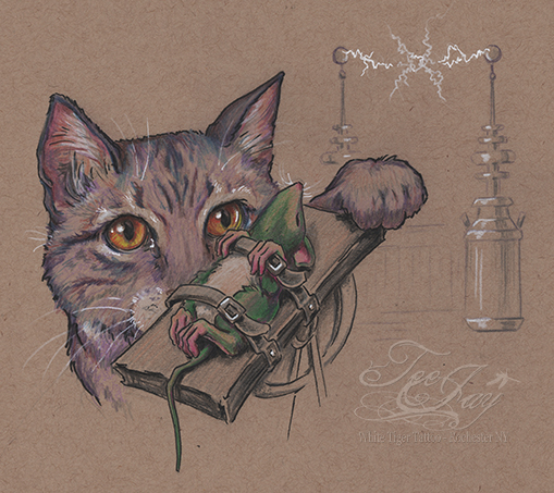 Day 13 – Frankenstein. I have enough literary folks in my life that I have learned that what most people think of when they think of Frankenstein is incorrect. Most people picture Frankenstein’s Monster. Frankenstein was the Doctor’s name. This is Frankenkitty. He is trying to figure out how to bring the mice back so that they can keep playing together. It’s hard when your friends suddenly stop moving on you.