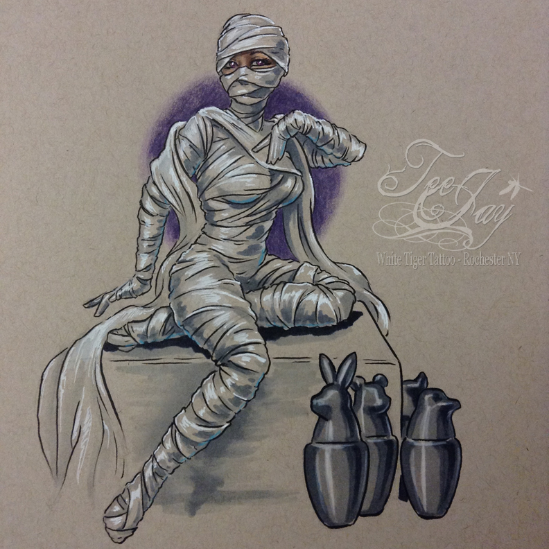 Day 25 – Mummy. One of the ones I really felt like I had to use a human for. When I went to look for reference for the jars I couldn’t remember what they were called. Fortunately googling “tomb jars” worked perfectly. I love when google thinks for me. Obviously I did not use the traditional heads for the jars.