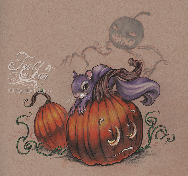 Day 6 – Pumpkin. Squirrel wants to eat the pumpkin. Pumpkin wants to eat the squirrel.