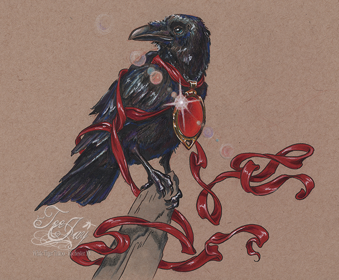 Day 15 – Amulet. The only thing I could think of for amulet was the necklace that Mrs Brisby had in the Secret of NIMH. I kind of felt badly for Jeremy the Crow that he didn’t get a sparkly. I mean, I know he couldn’t have THAT sparkly – but I know what it is like to covet a sparkly. So for my amulet drawing I gave Jeremy his own.