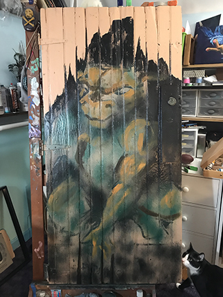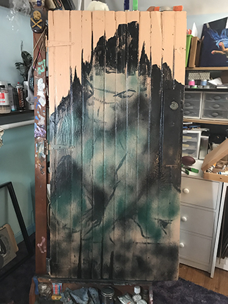 I was inspired! I reached out to Jubie and he brought the door over to me a couple hours later. Little bit of sanding and I was ready to go!