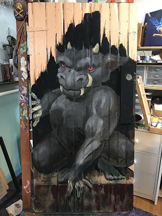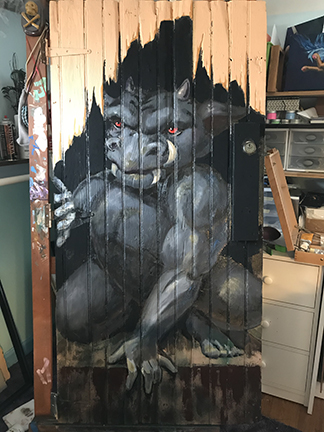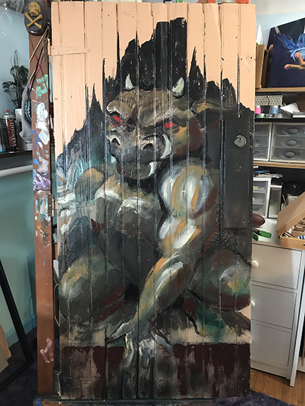 My friend Jubie posted a photo of his basement door. Said that he wanted to do something interesting with it. I think he may have tagged me but I’m not sure. Anyhow, this was the photo.