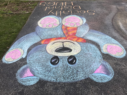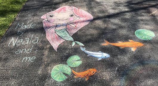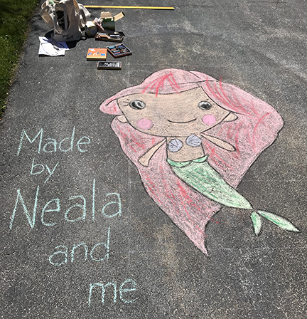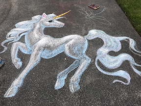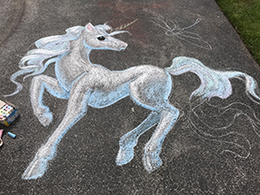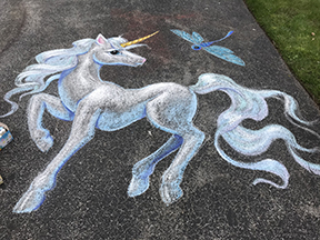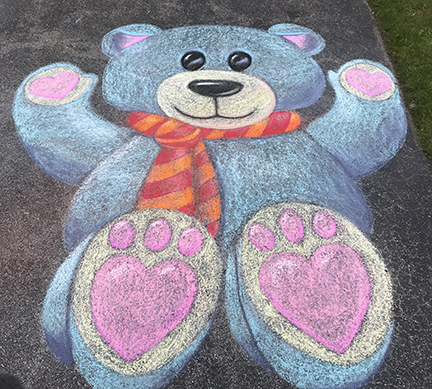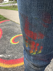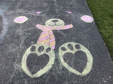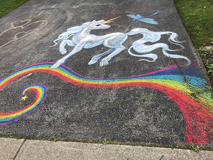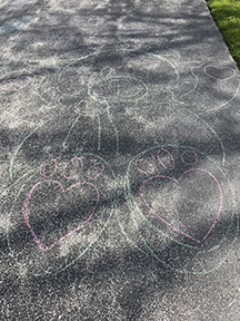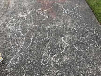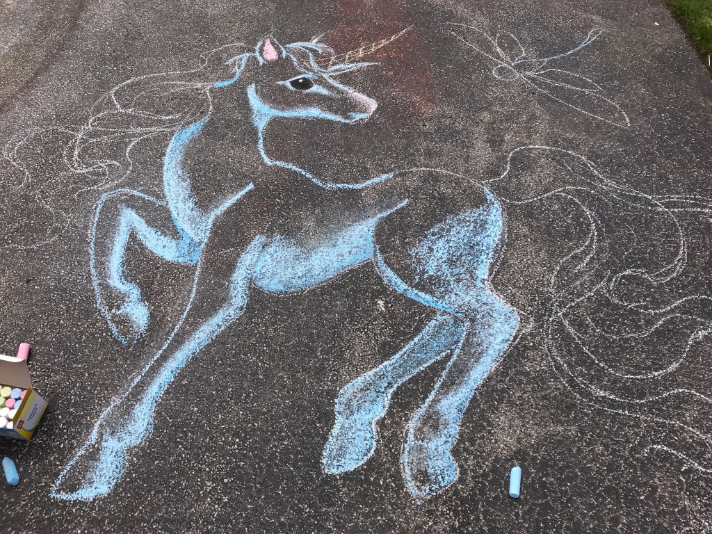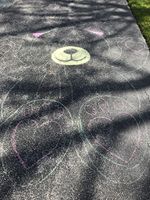 The weather remains gross. Too cold to do much outside and I haven’t been feeling well physically. Decided to try and make a really small chalk drawing so there would be something out there for the kids to find.