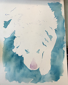 Then the reason that I had been practicing watercolor again. A painting that I have been wanting to make of my Aunt and Uncle’s dog (that I wanted to do for Christmas… at least Quarantine is helping me get caught up).