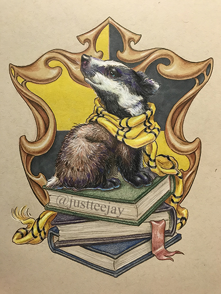 I had asked my sibling for suggestions on chalk drawing animals. They suggested a Badger “for HufflePuff”. The weather has NOT been good for chalking so I decided to draw the badger instead. Please do not report me. I think Disney owns that series now and it would not do me well to get anymore cease and desist orders. While the suggestion was made, I am not way representing this as a Hufflepuff badger…. only a well styled badger which happens to like the house colors. Think that is okay?
