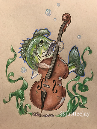 Drawing prompt: “Bass playing bass”. Like we needed more confirmation that English is an awful language to try and keep track of. One of those is pronounce bass and one is pronounced base.