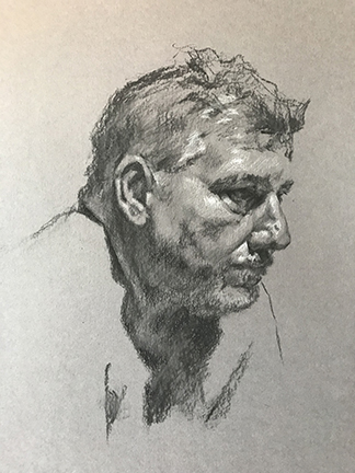 That was as far as I made it during class. I was super grateful for having taken a workshop from David Kassan prior to this as I had learned some techniques with the charcoal pencils and this made working with the charcoal more tolerable. For the record, I still dislike working with charcoal. I mean, it looks great but I don’t like the feel at all. It is some sort of tactile thing. The pencils are better as I am at least not directly touching the charcoal, but I can guarantee it will never become my “go to” medium.