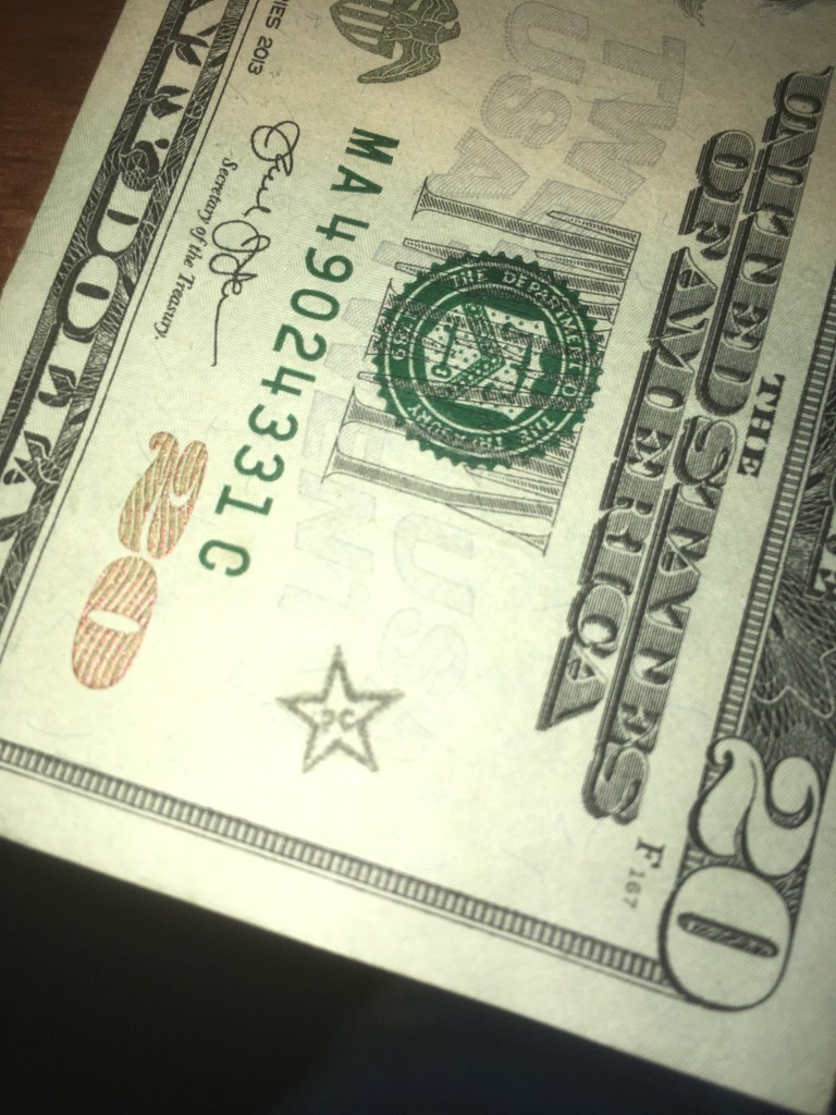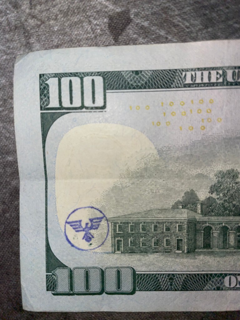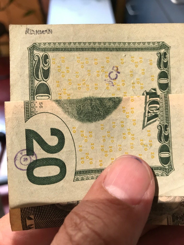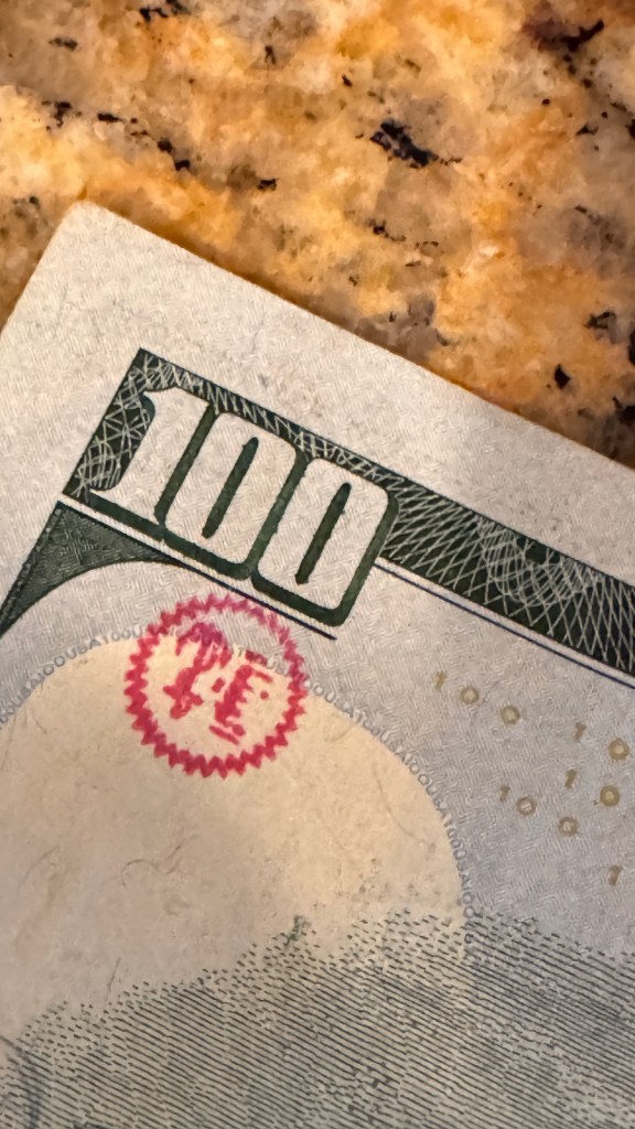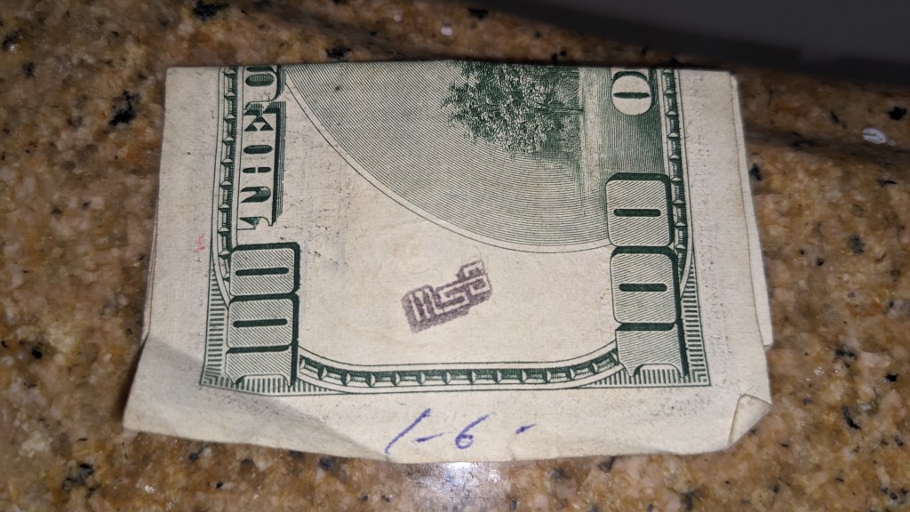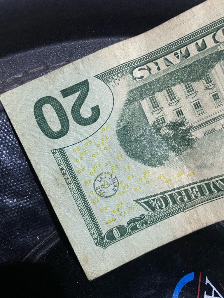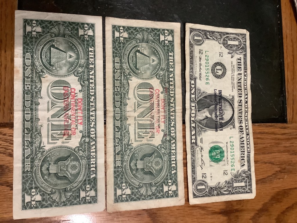 Hello! I was surfing the web for any insight for the stamps on money and found a blog of yours from 2012. Since I was a little kid I was always fascinated by these strange markings some bills had, but nobody let me keep them. Now that Im older, I can at least keep a record of them. I only got to keep the blue dog stamp because I begged so hard for it. Im not sure who stamped it or where it was stamped, but it belonged to my great grandfather.