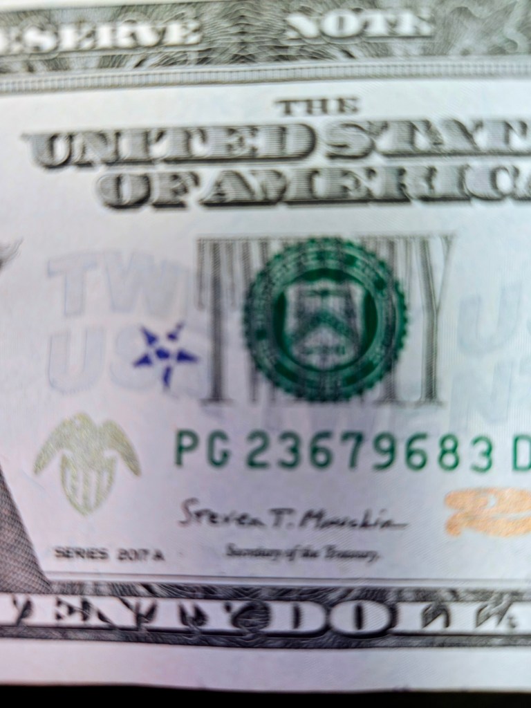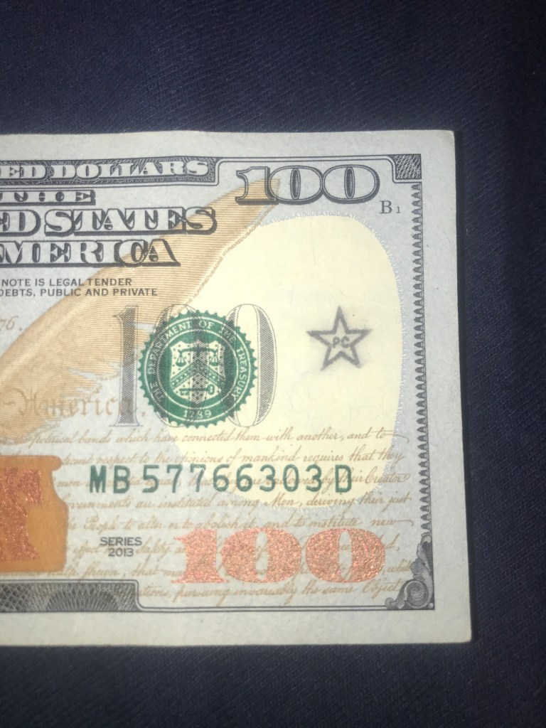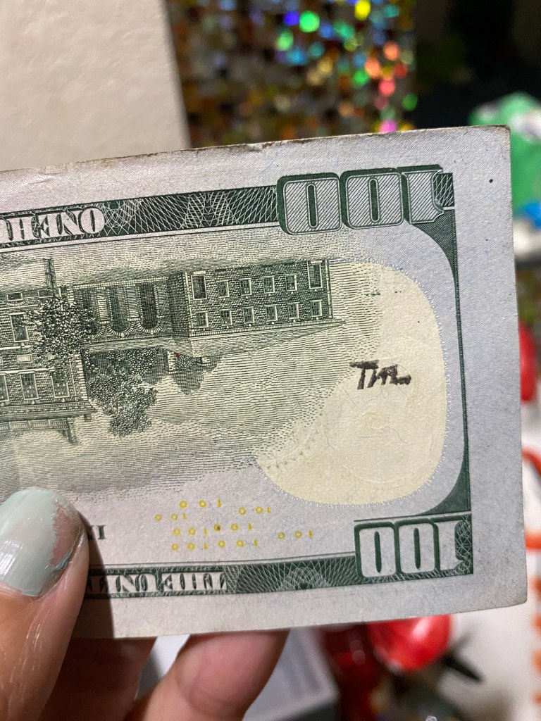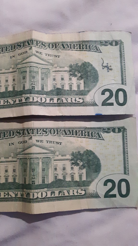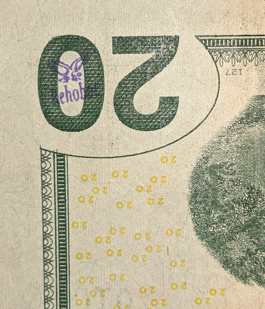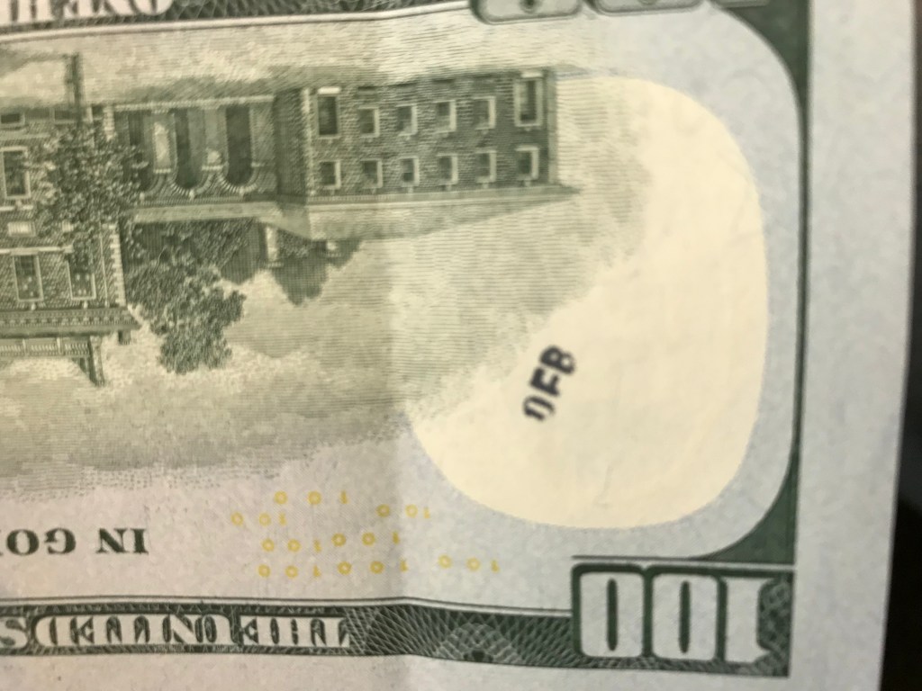 Hello! I was surfing the web for any insight for the stamps on money and found a blog of yours from 2012. Since I was a little kid I was always fascinated by these strange markings some bills had, but nobody let me keep them. Now that Im older, I can at least keep a record of them. I only got to keep the blue dog stamp because I begged so hard for it. Im not sure who stamped it or where it was stamped, but it belonged to my great grandfather.