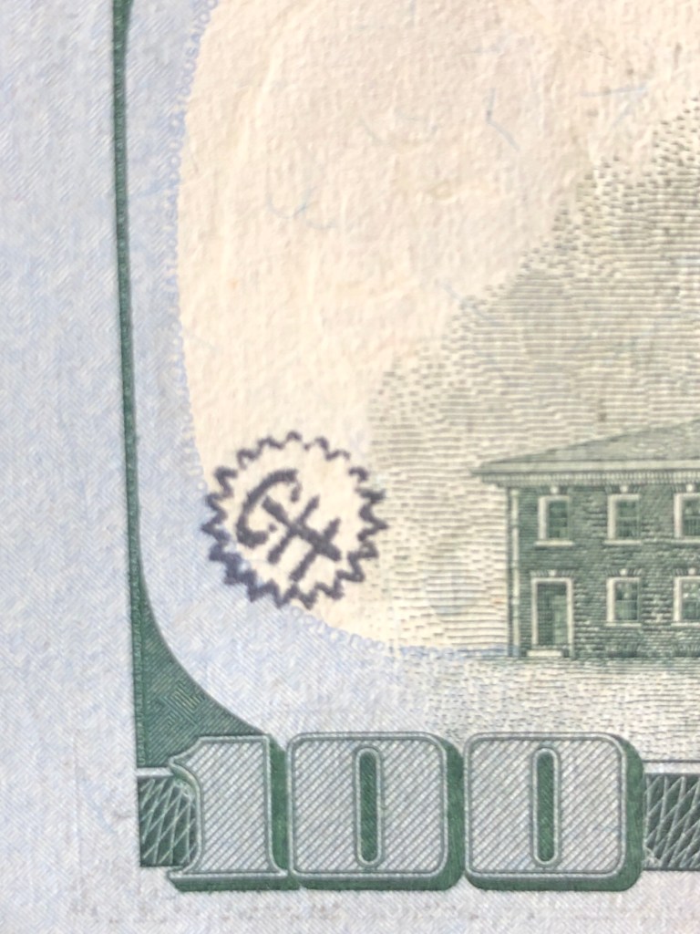 Laura sent me this lion embossed on a 2016 $100. I am really surprised she even caught this. I haven’t seen anything like this one before.