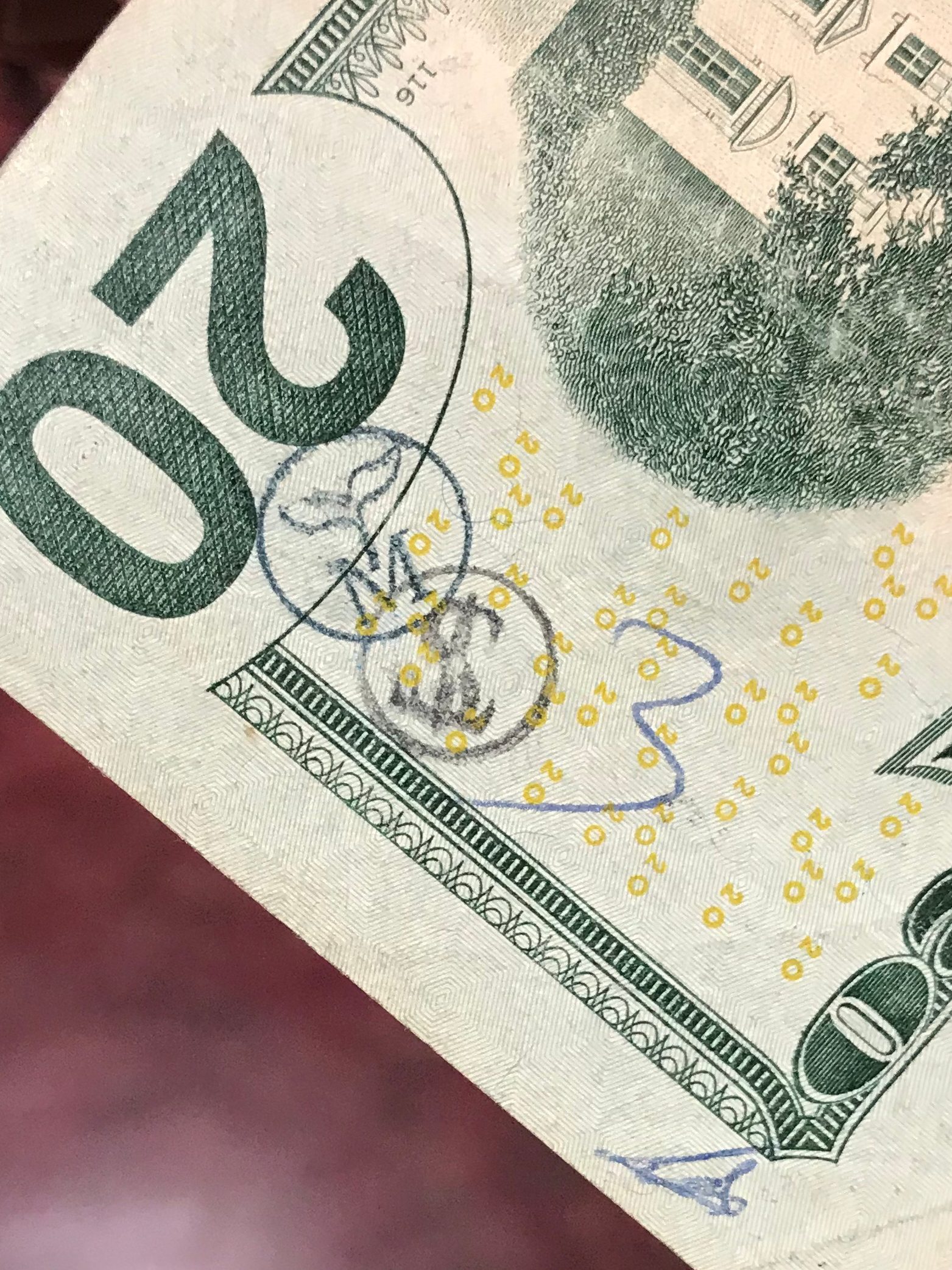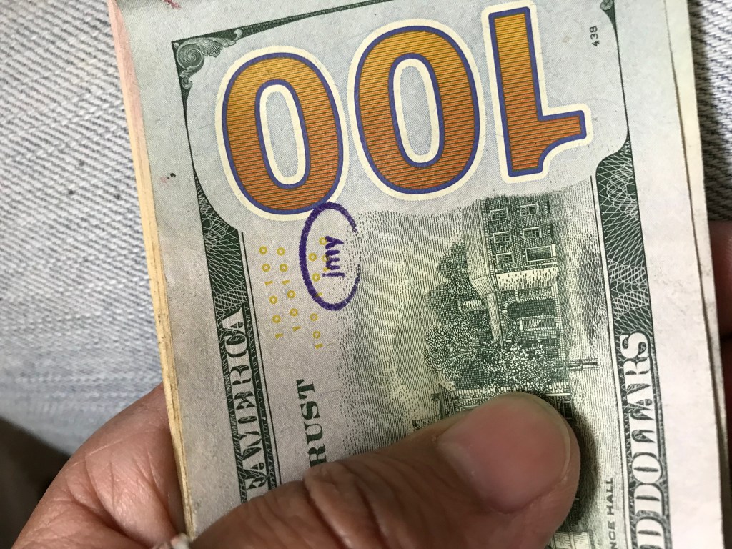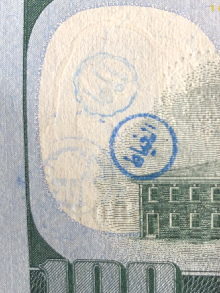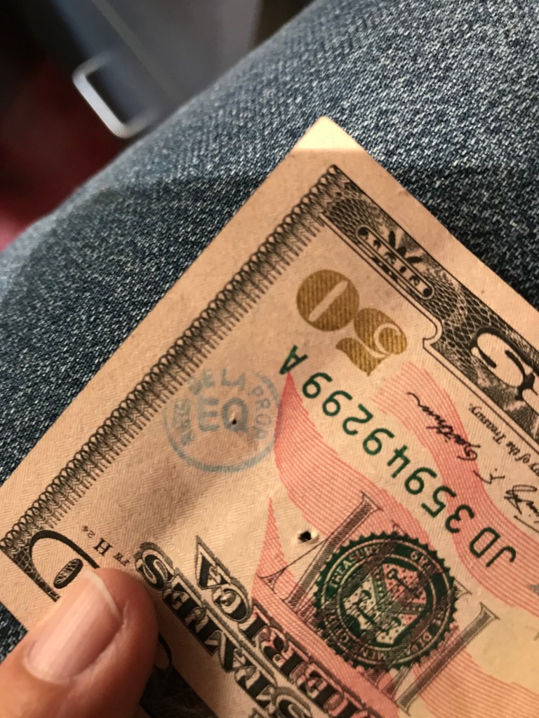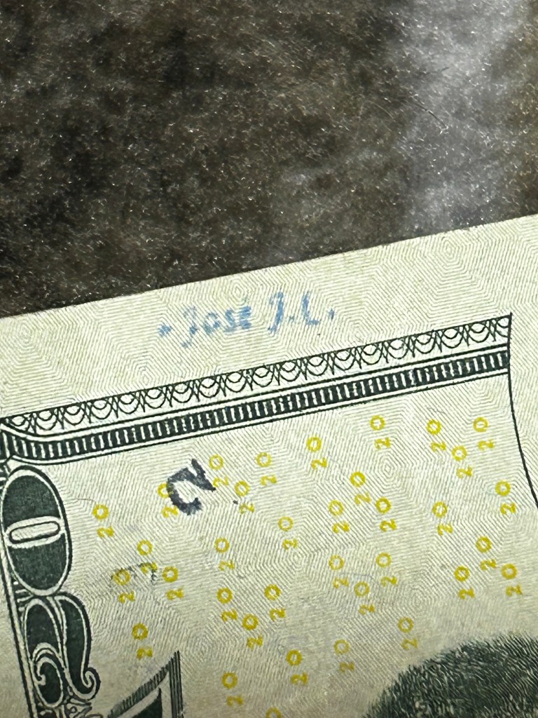 There was mention of banks stamping these bills and yes, it may be true. The one marked in blue is from “Banco Popular, Barrio Obrero” from a bank seemingly on 2015 and has been with me for a while.