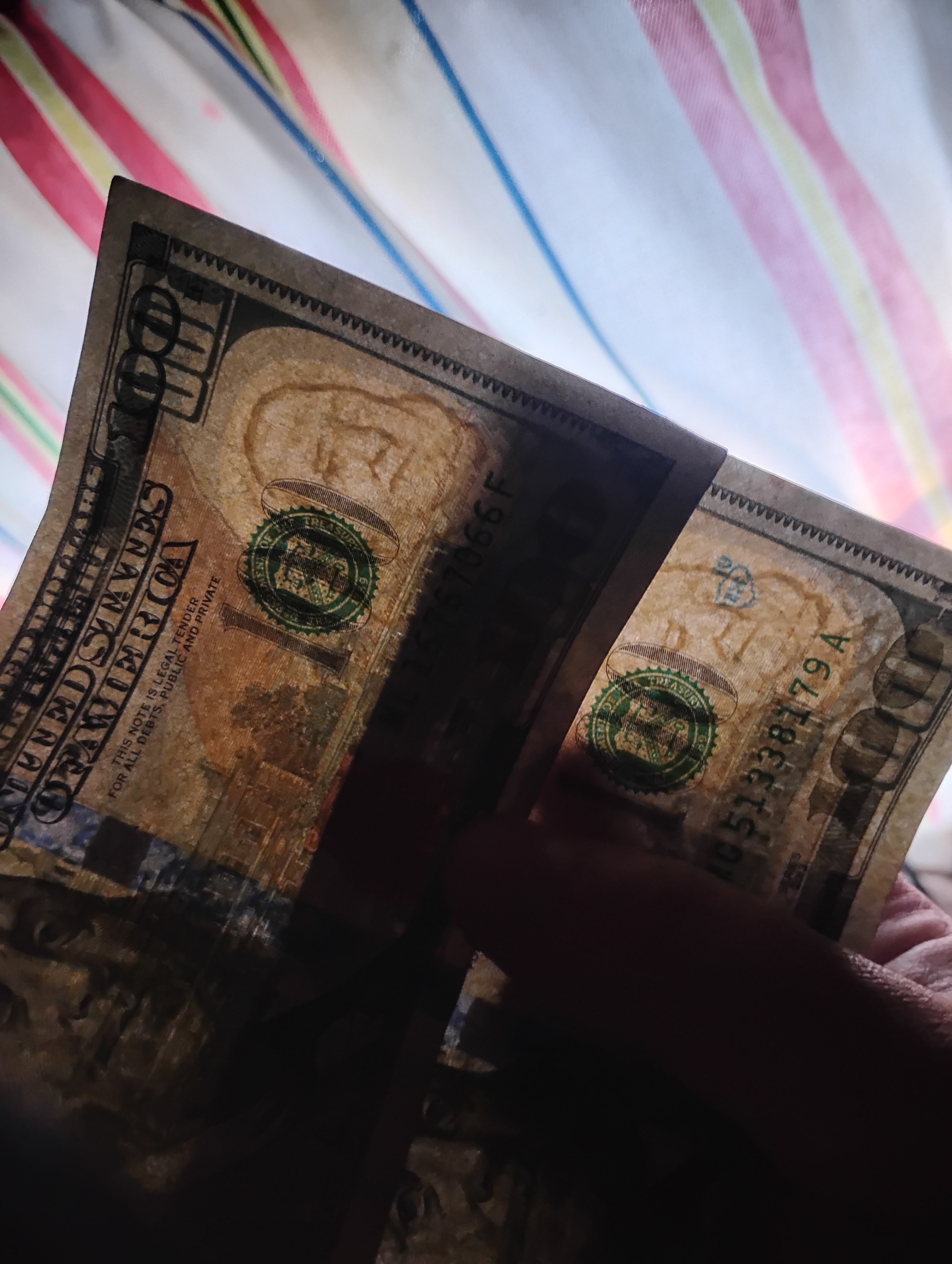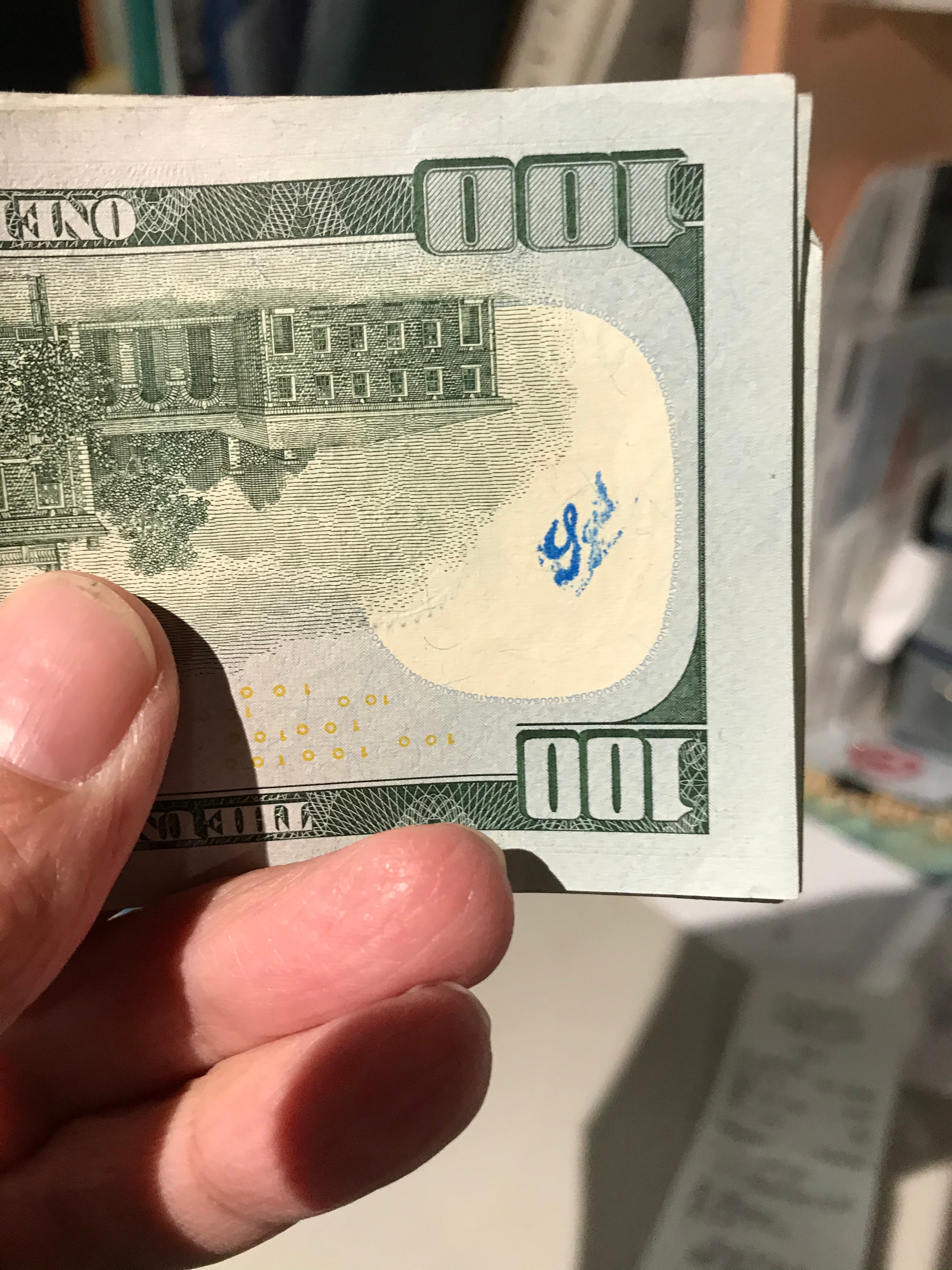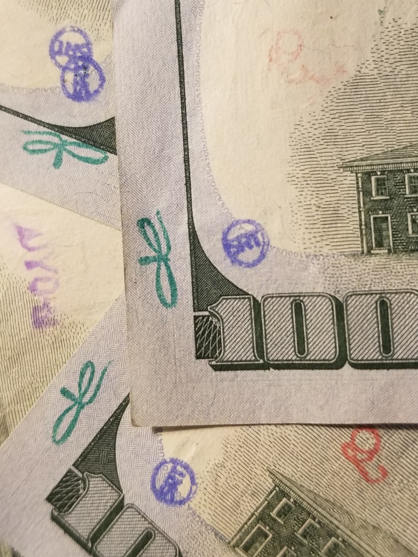 There was mention of banks stamping these bills and yes, it may be true. The one marked in blue is from “Banco Popular, Barrio Obrero” from a bank seemingly on 2015 and has been with me for a while.