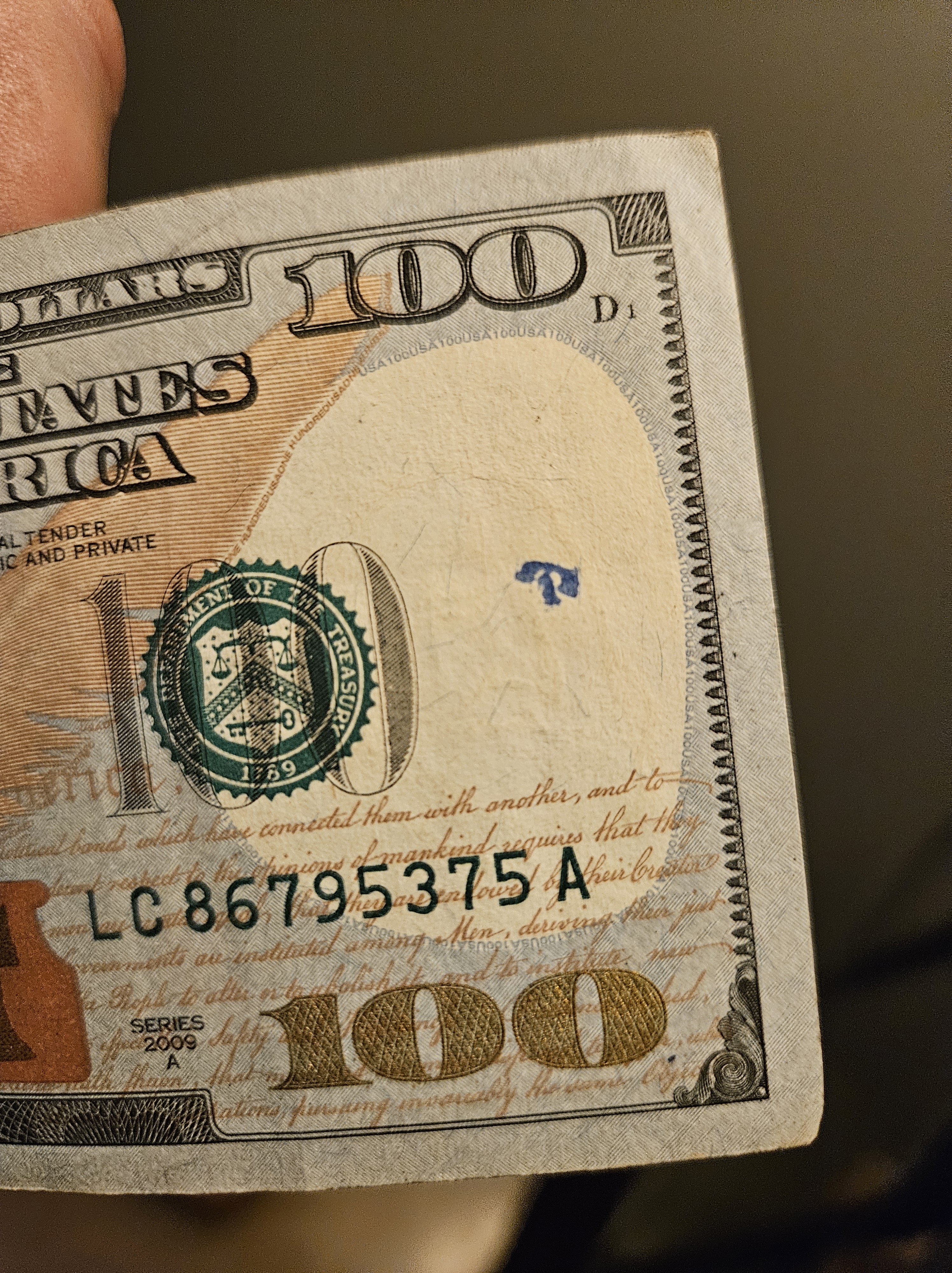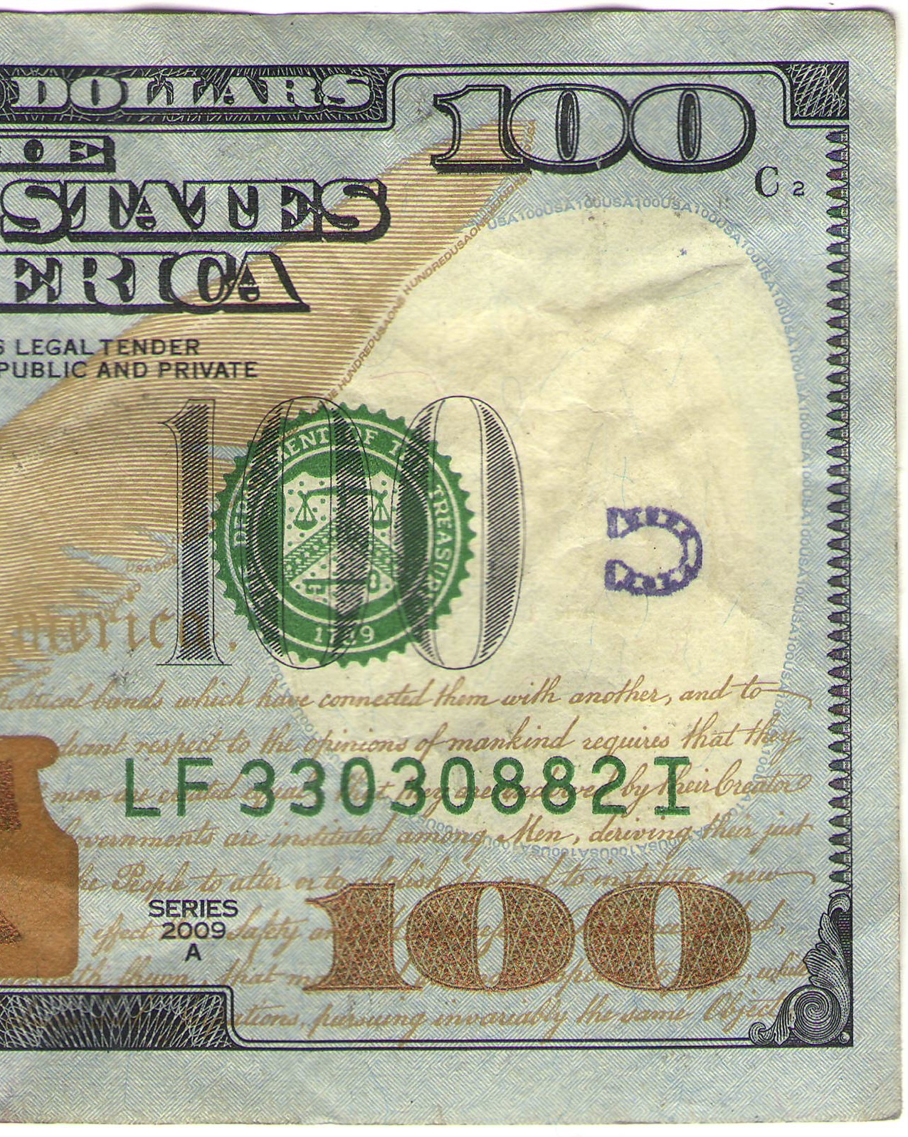 Three on an old $100 from Thomas W.