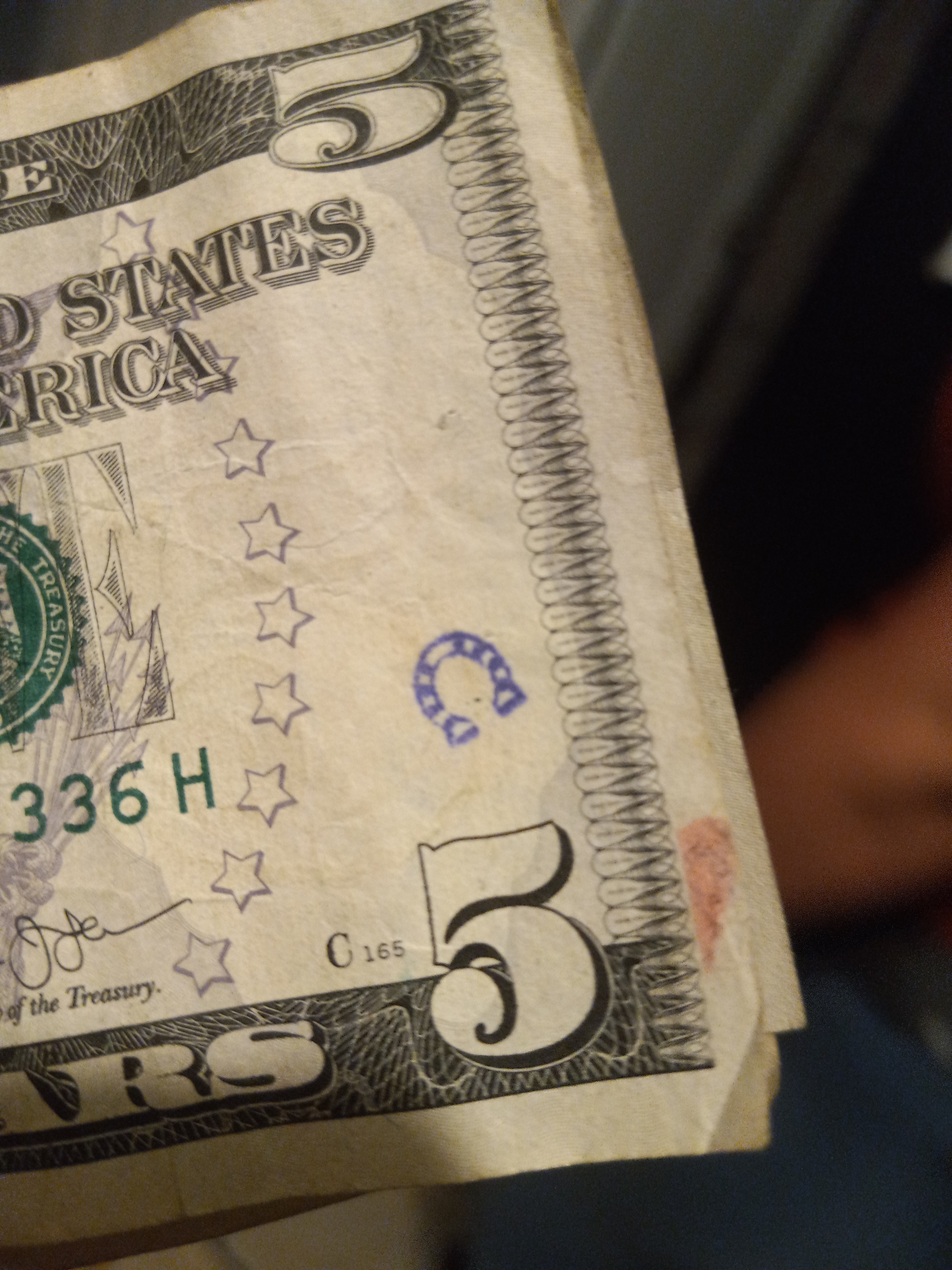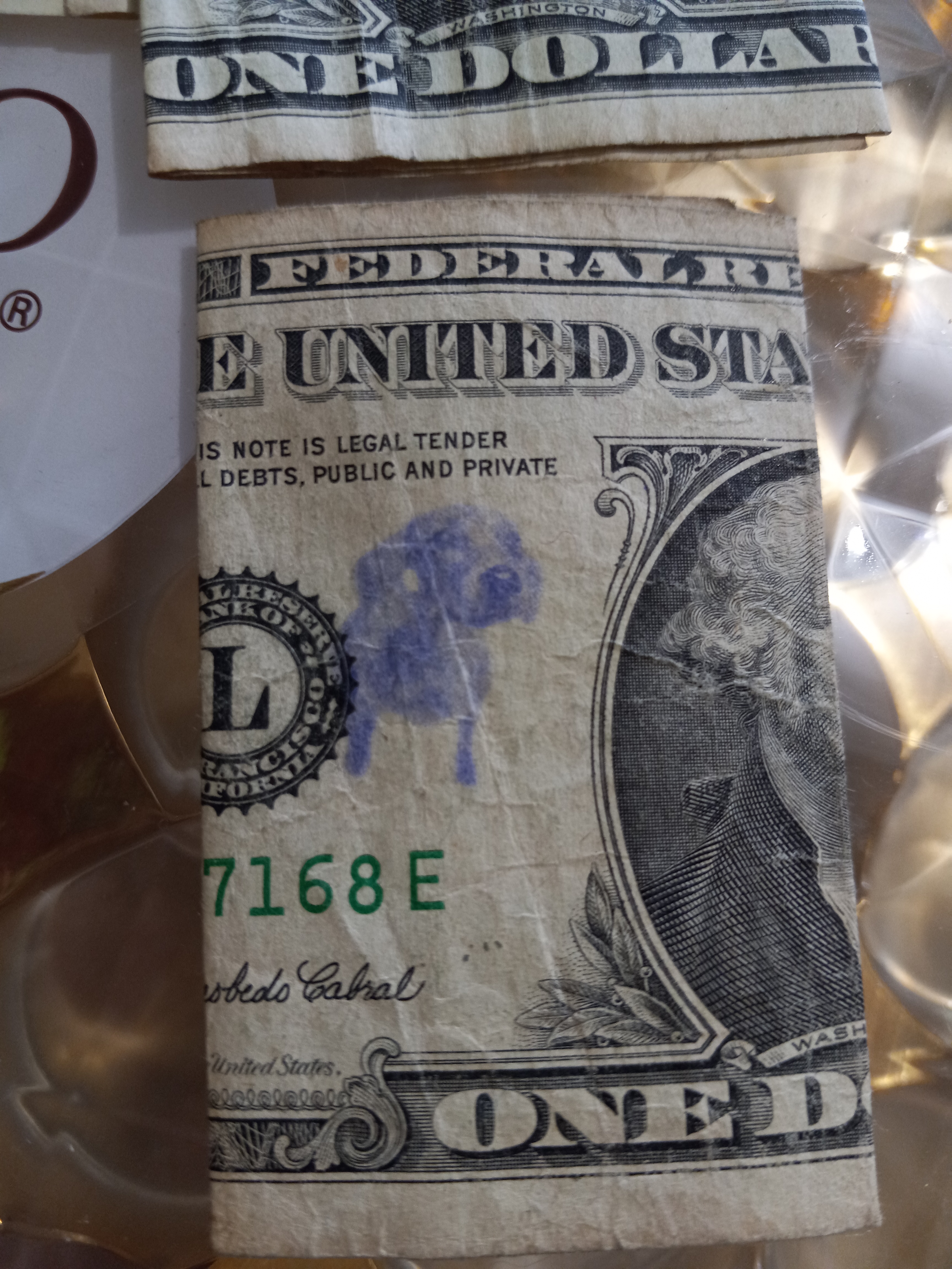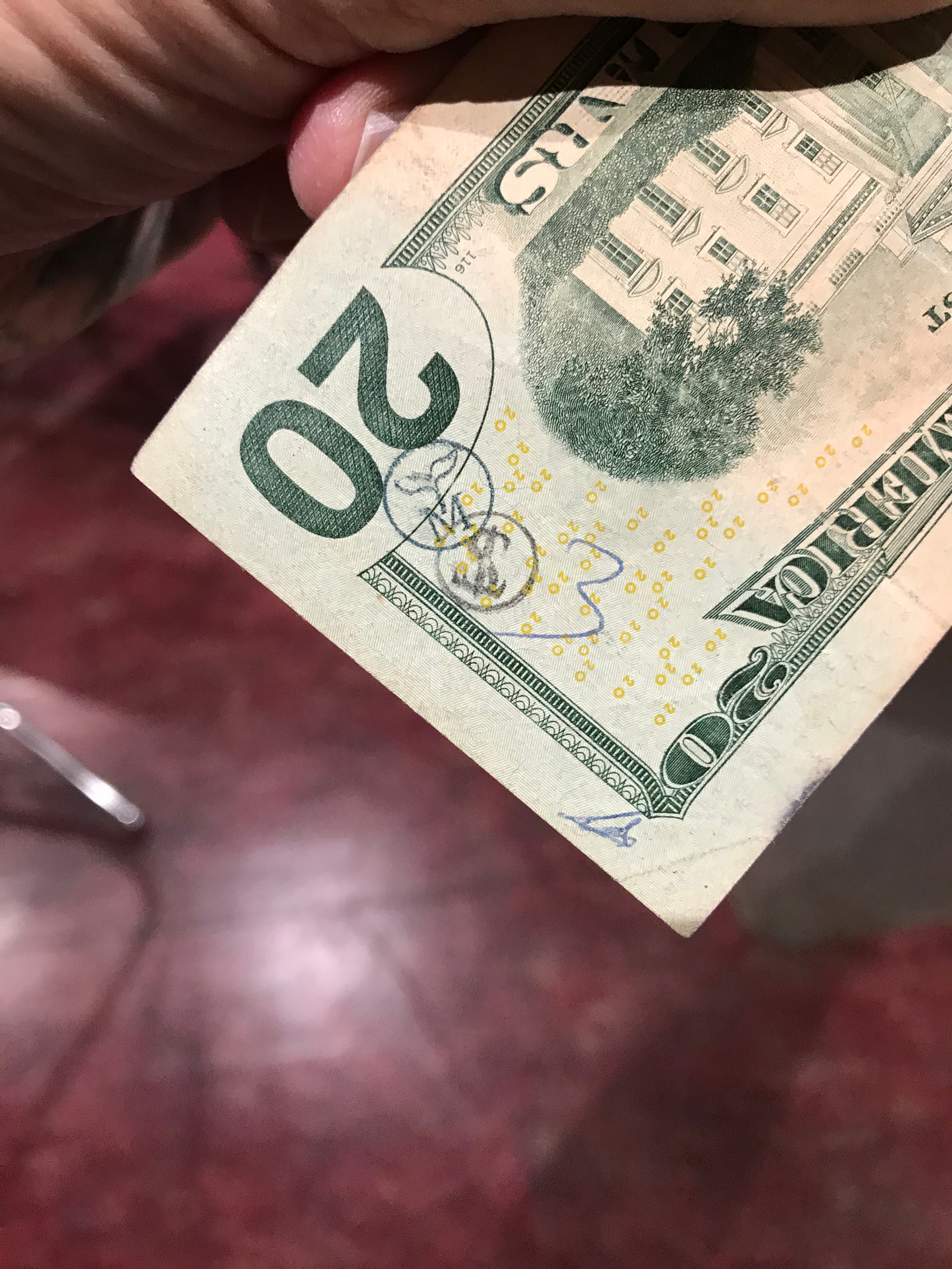 Hello! I was surfing the web for any insight for the stamps on money and found a blog of yours from 2012. Since I was a little kid I was always fascinated by these strange markings some bills had, but nobody let me keep them. Now that Im older, I can at least keep a record of them. I only got to keep the blue dog stamp because I begged so hard for it. Im not sure who stamped it or where it was stamped, but it belonged to my great grandfather.